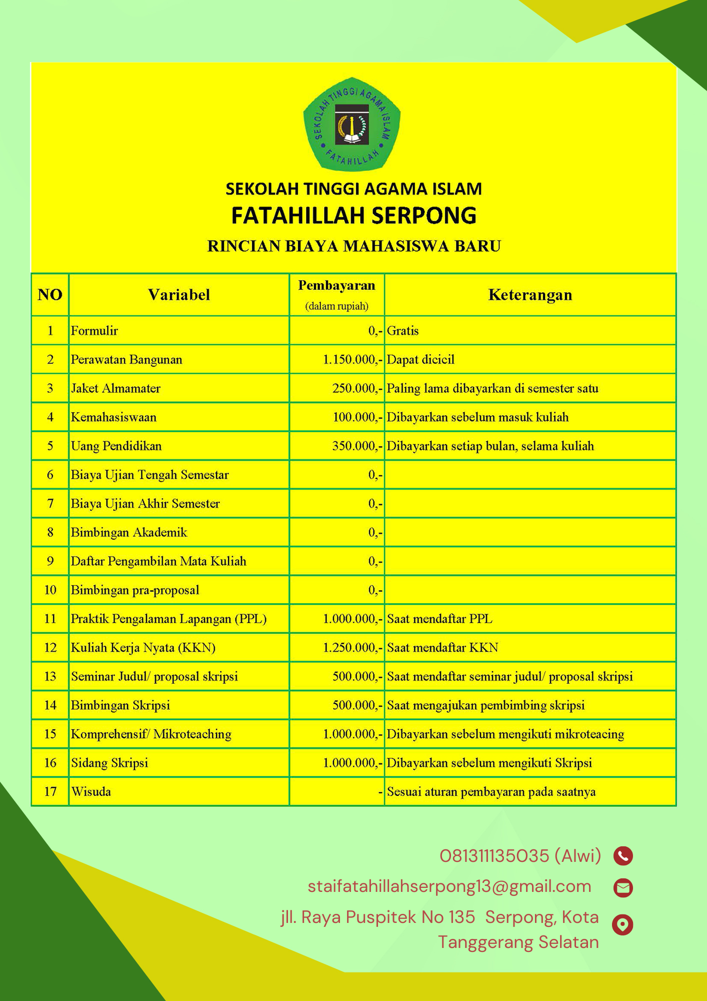 Berikut Rincian Biaya kuliah di STAI FATAHILLAH
