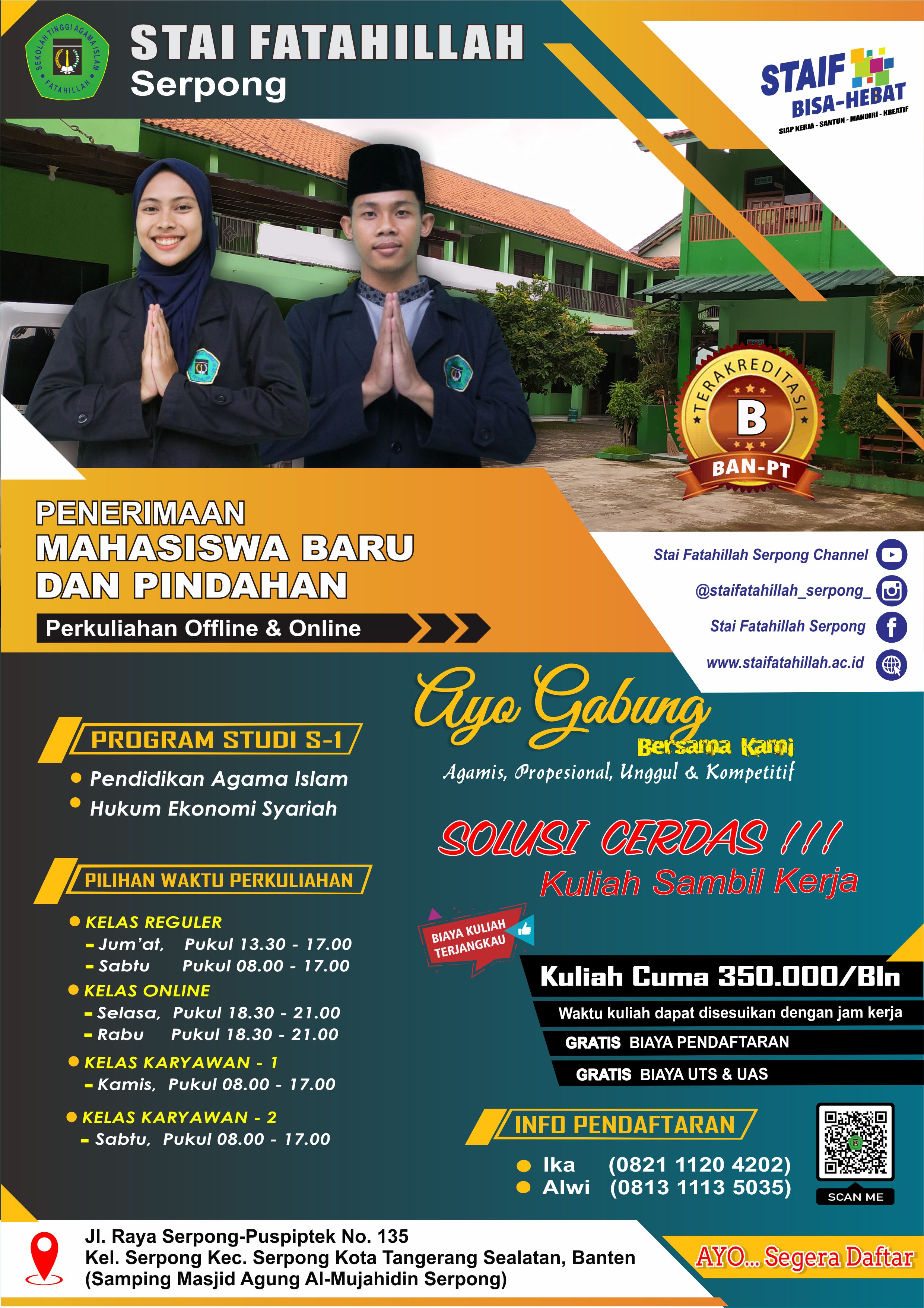 Seusai lulus dari jenjang SMA/SMK dan Sederajat, melanjutkan studi ke perguruan tinggi menjadi impian setiap siswa. Ada perasaan bangga karena siap untuk menyandang status sebagai mahasiswa. Namun, memilih perguruan tinggi bukanlah perkara mudah. Calon mahasiswa harus memantapkan pilihan jurusan. Selain itu, calon mahasiswa pun harus mencari pilihan perguruan tinggi yang dapat menunjang pembelajaran dan mengantar mencapai cita-cita. Ada kabar gembira nihh buat kalian generasi muda yang baru lulus SMA/ SMK dan Sederajat atau sudah kerja lalu ada rencana untuk melanjutkan kuliah! SEGERA daftarkan diri kalian sekarang di Sekolah Tinggi Agama Islam Fatahillah Serpong!